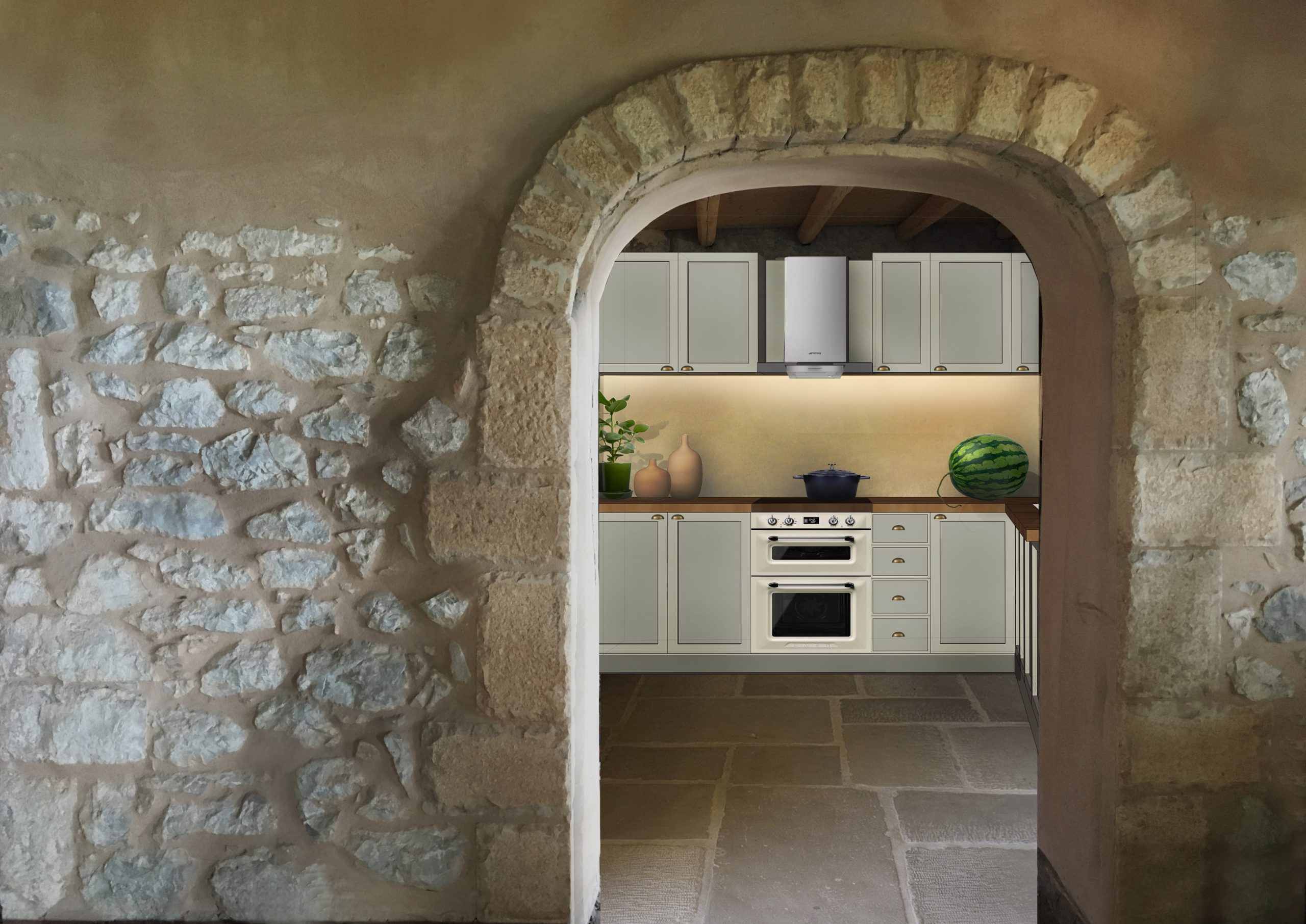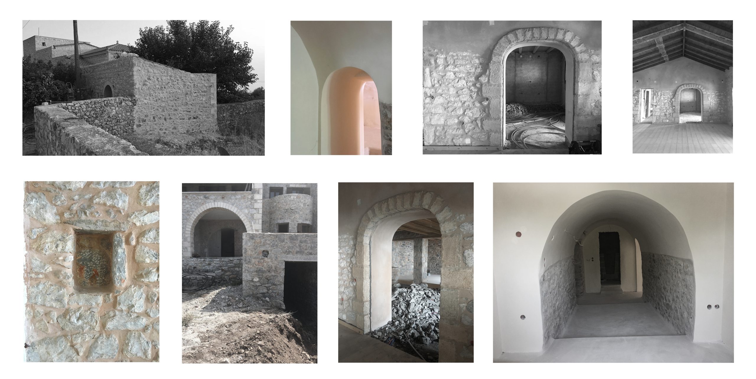 Given the situation, we were asked to interfere in the most minimal way, rearranging some of the main living areas, as well as to highlight all the traditional features of both interior and exterior spaces. Modern materials and cement finishes coexist with 100 years old stones, harmonically merging the old with the new. Various local stones and marble were used as pavement for the new terraces, wooden ceilings were preserved and painted in matching natural colors.
